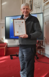 Congratulations, Juraj! Juraj was honored at a local meeting of the Crystallographic Association. The head of the association, Prof. R. Kužel of Prague (Charles University, Mathematical Physical faculty) presented to Juraj the diploma of "Kryštalografický kmeť" (Crystallographic Elder, a well deserved honor). The program included lectures by Richard Smolko, Juraj Kuchar, Ivan Potočňák, and Prof. Vladimír Zeleňák.